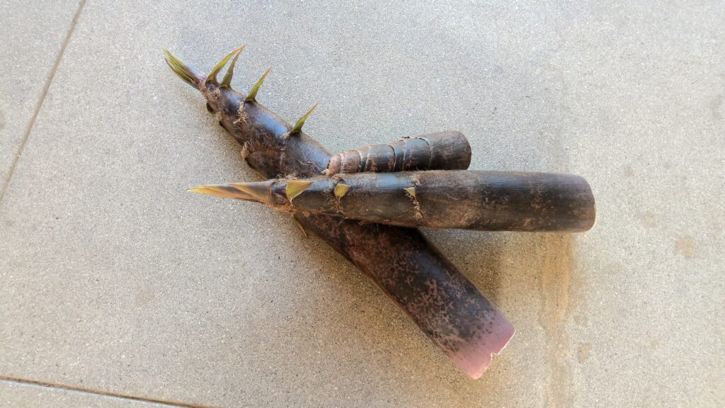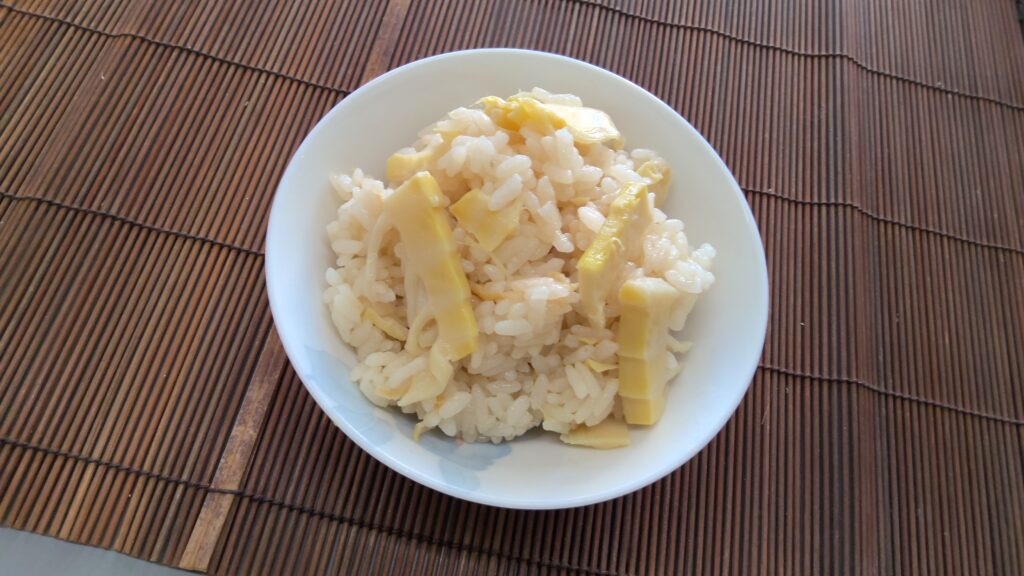 あおばの日常 たけのこが採れました。 2025年4月17日 mito-hs 御津あおば高校では「たけのこ」が採れます。用務員さんが収穫した穫れたてのたけのこを、家庭科室ですぐにあく抜き、翌日の「フードデザイン」の授業で「たけのこご飯」にしました。春をお腹いっぱいに感じました。