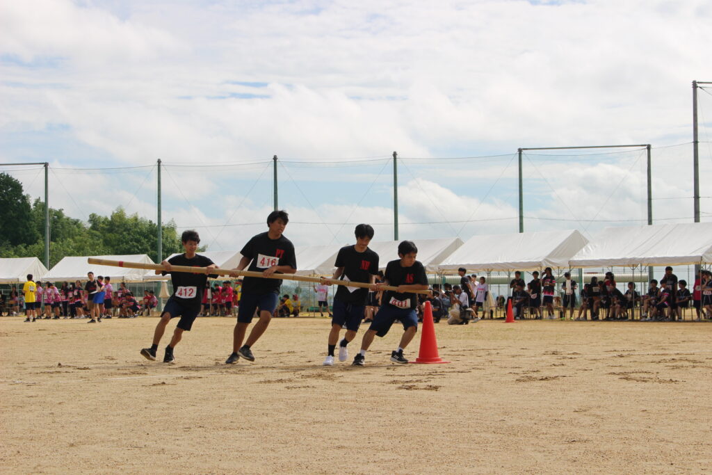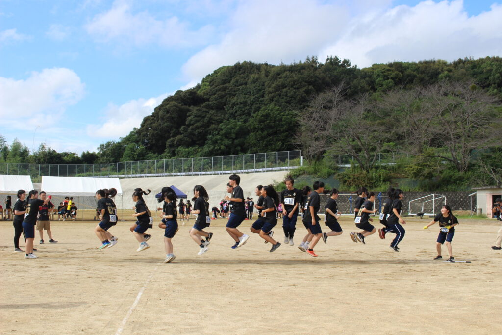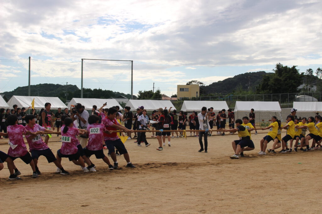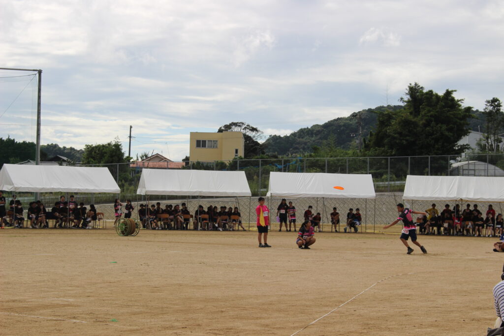 10月7日(月)に体育大会を行いました。天候が心配されましたが、多くの生徒の協力のもと、無事に全競技を行うことができました。女子フリスビー投げは大会新記録(34.5m)でした。各学年の優勝は1年2&6組、2年2組、3年2組で、団優勝は黄団(1年2組、1年6組、2年3組、3年2組)でした!