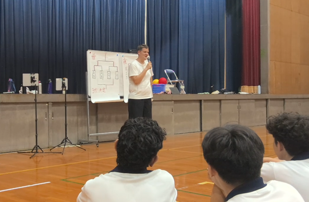 クラス対抗で4つに分かれ、ドッジボールをしました。このドッジボールには、オーストラリアの姉妹校の生徒たちも参加しました。