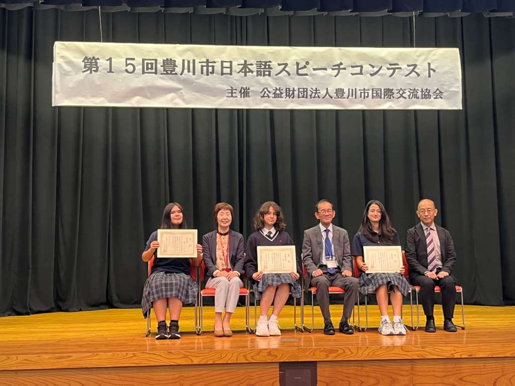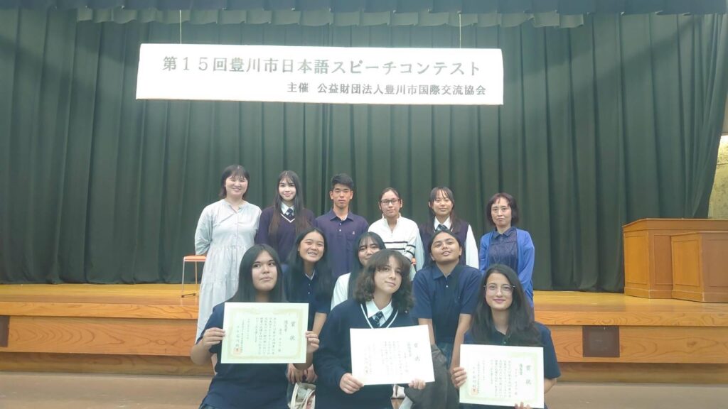 10月20日(日)に豊川市勤労福祉会館で行われた豊川市日本語スピーチコンテストに、本校から5名出場しました。当日は本校生徒が司会も担当し、日本語と英語で進行のお手伝いをさせていただきました。最優秀賞・優秀賞・優良賞を受賞することができたので、1月に行われる東三河大会に向けて、引き続き練習をしていきます!