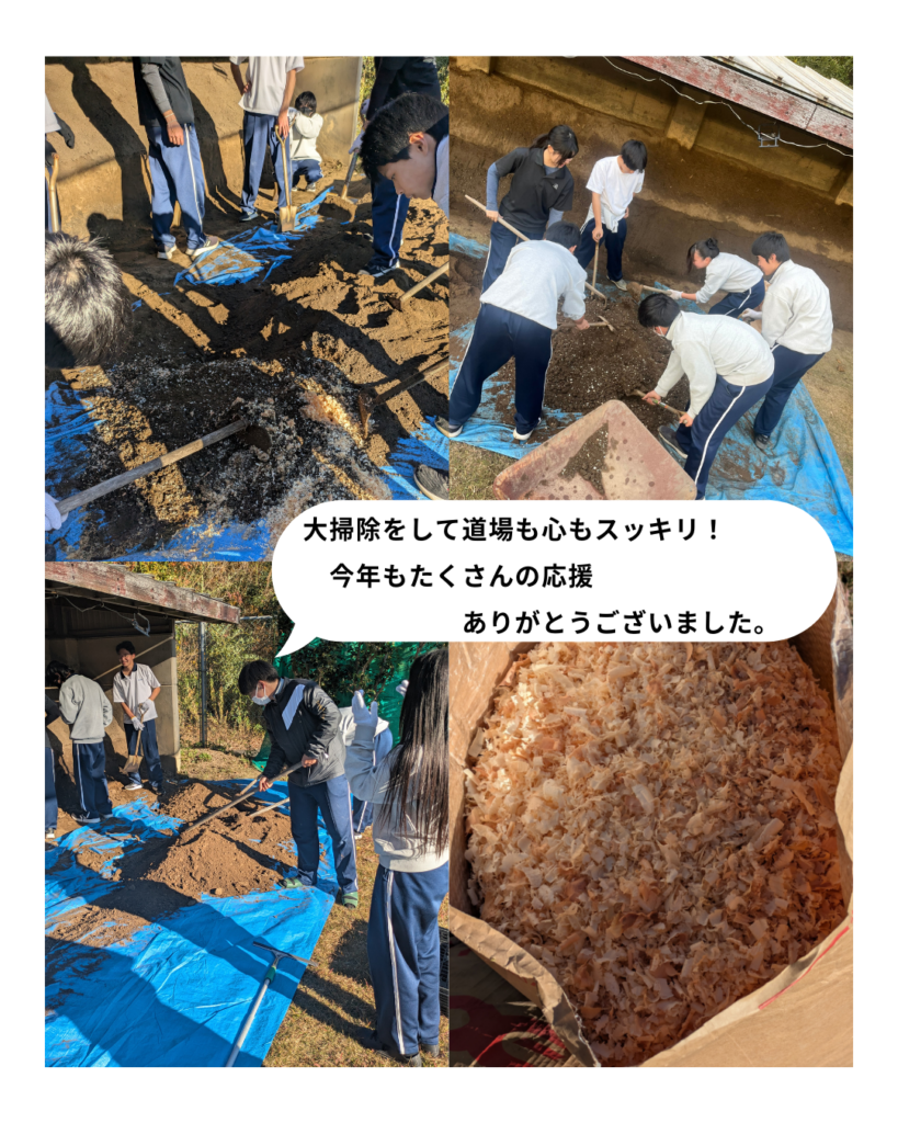 弓道部では一年の締めくくりとして、道場の大そうじと安土整備を行いました!