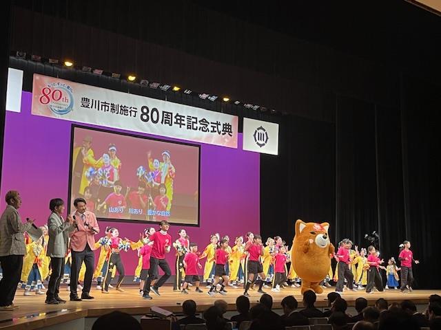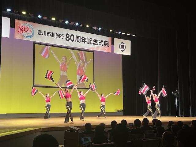 あおばの日常バトン部活動 【バトン部】豊川市制施行80周年記念式典 2024年3月8日 承認者 2/24(土)に豊川市文化会館で行われた豊川市制施行80周年記念式典で、本校バトン部が演技を披露しました。来年度も全国大会出場という目標を達成しようと決意を新たにしました。