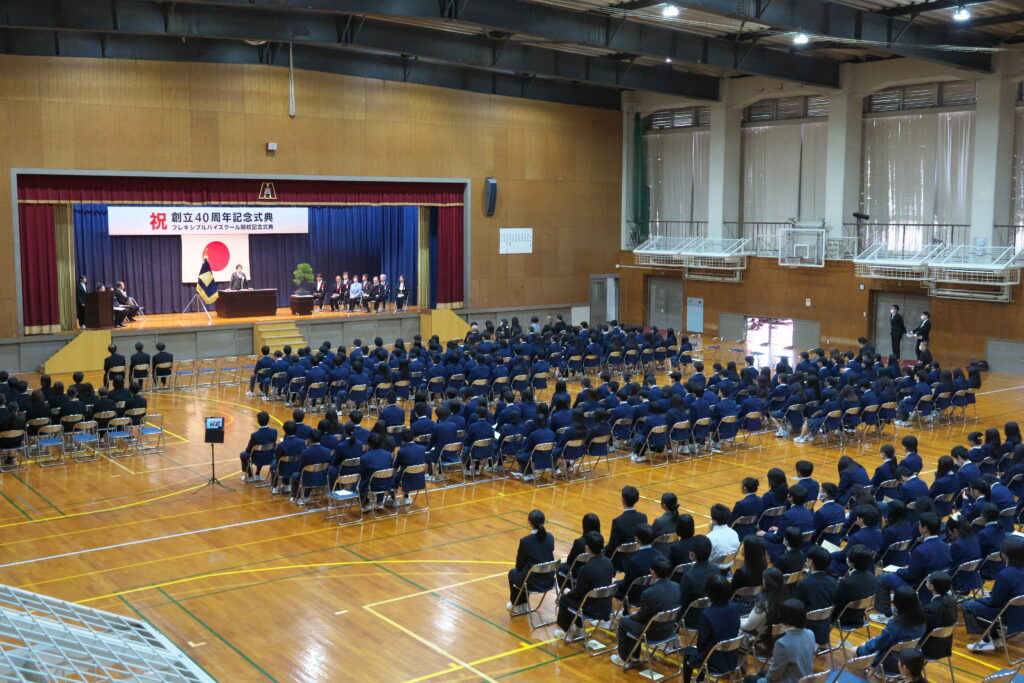 令和7年11月27日(木)に愛知県立御津あおば高等学校創立40周年記念式典、並びにフレキシブルハイスクール開校記念式典を盛大に挙行いたしました。式典の司会進行は生徒会執行部の生徒が務め、落ち着いた態度と的確な進行で、式典を立派にまとめ上げました。